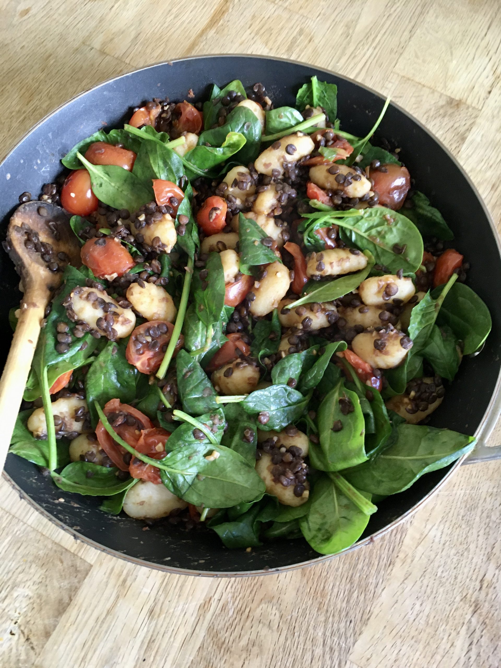Gnocchi-Pfanne mit Linsen, Tomaten & Spinat {vegan}